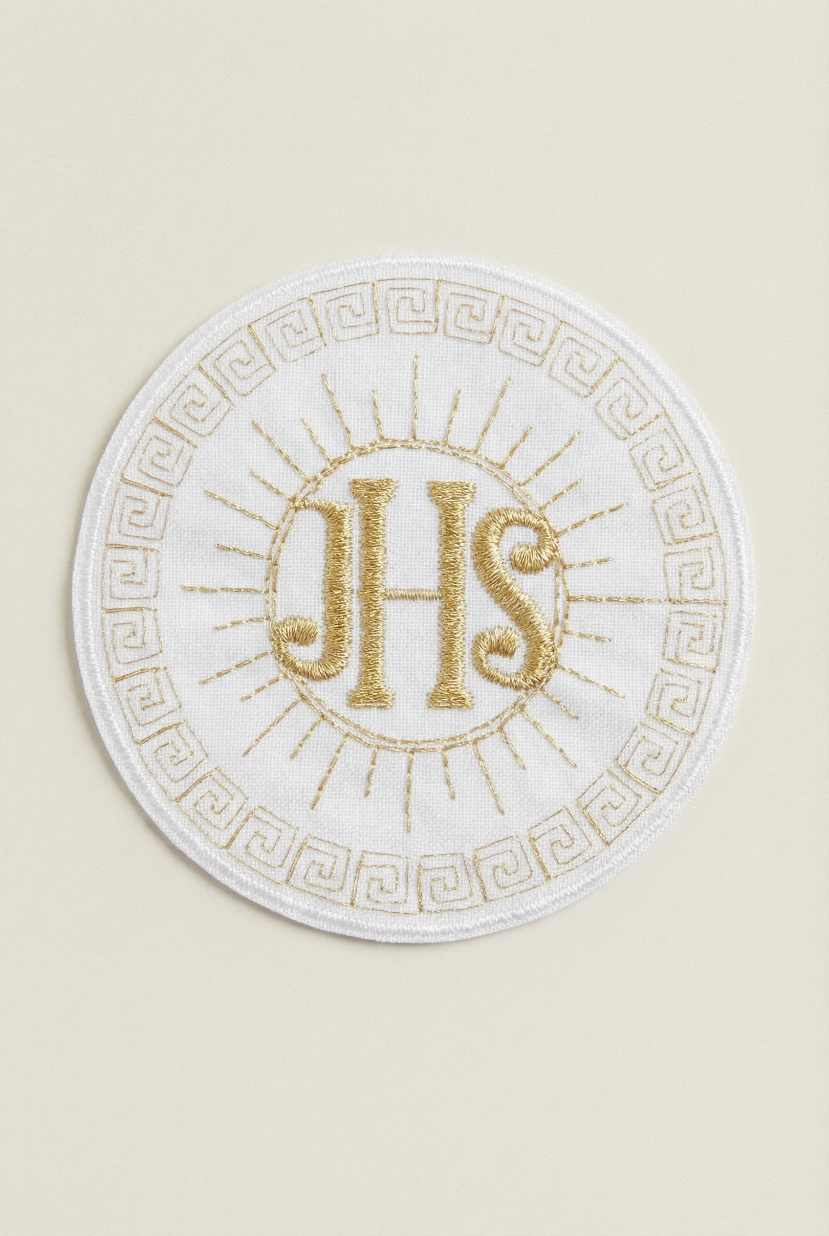 Zelta IHS emblēma – izšūta aplikācija Pirmajai Svētajai Komūnijai 8cm